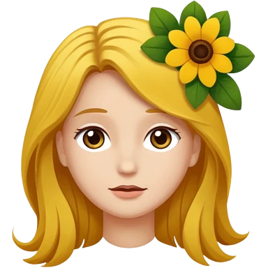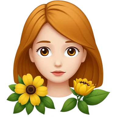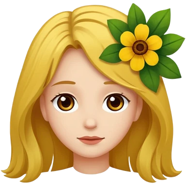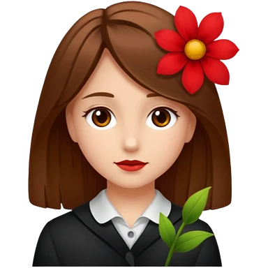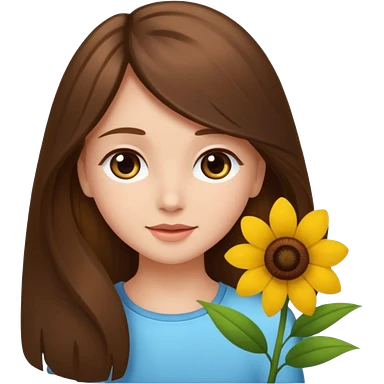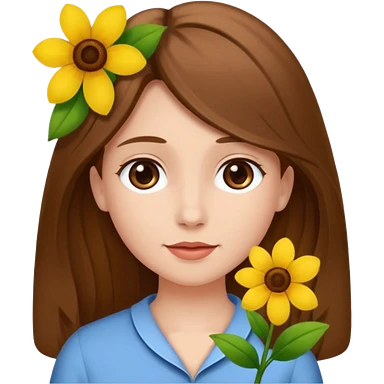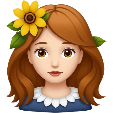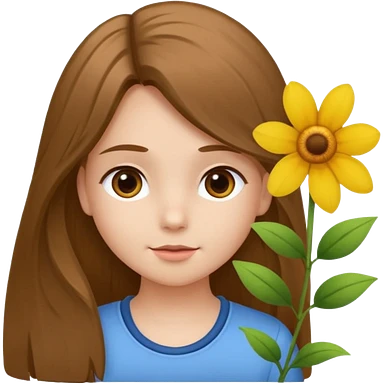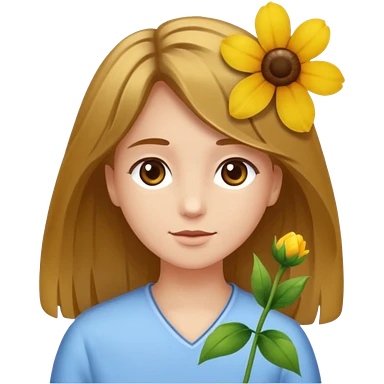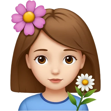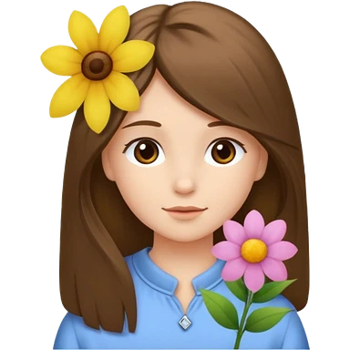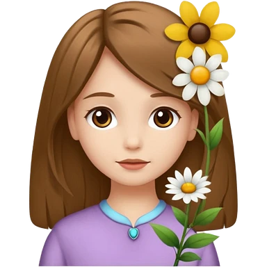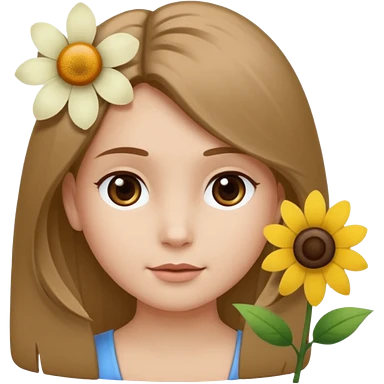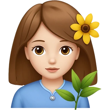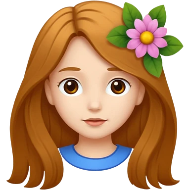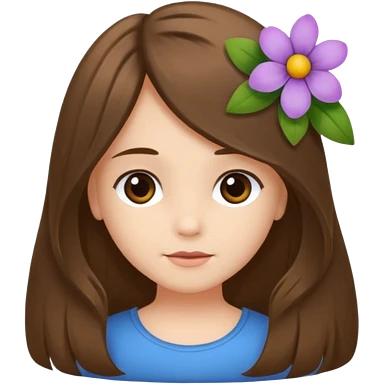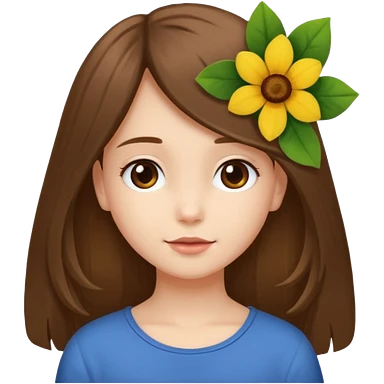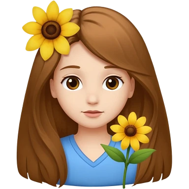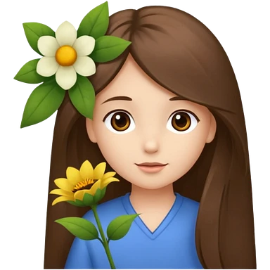 Ein braunhaariges Mädchen (glatte Haare ) mit einen Blume hinter dem ohr lange haare zur Seite kuckend Blume hinter dem rechten Ohr so das man es sieht zur Seite schauen soll das Mädchen also sieht man das Mädchen von der rechten Seite emoji