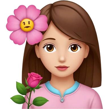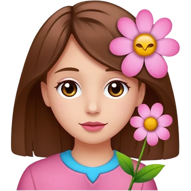 Ein braunhaariges Mädchen (glatte Haare ) mit einen Blume hinter dem ohr emoji