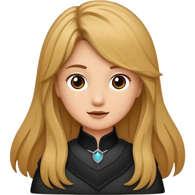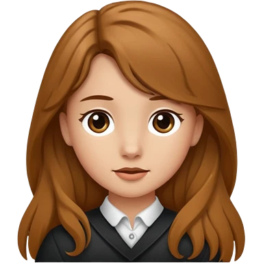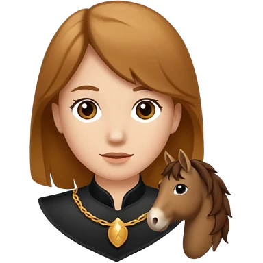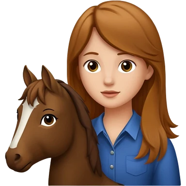 Ein braunhaariges Mädchen mit langen glatten Haaren und sitzend auf einem Braunen Pferd mit schwarzer Mähne ohne Abbzeichen emoji