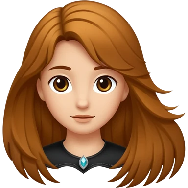 Ein braunhaariges Mädchen mit langen glatten Haaren und sitzend auf einem Braunen Pferd mit schwarzer Mähne emoji