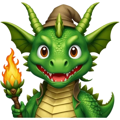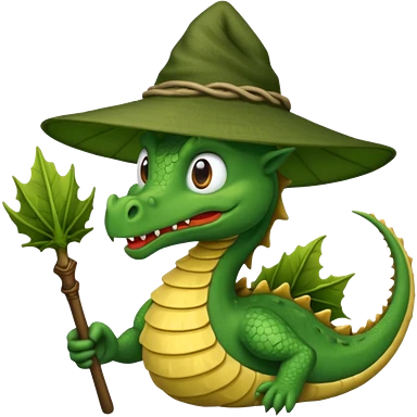 ein Drache mit einem Zauberstab in der Hand und einem Hud auf dem kopf und ein schnurbard auf dem gesicht emoji