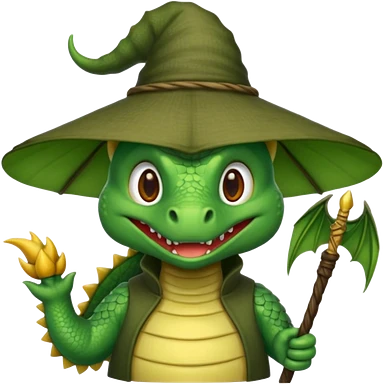 ein Drache mit einem Zauberstab in der Hand und einem Hud auf dem kopf und ein schnurbard emoji
