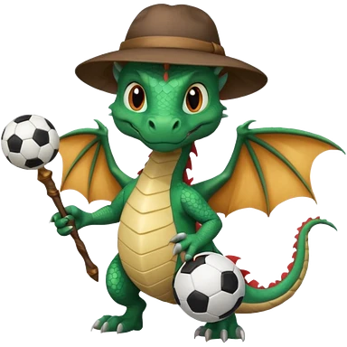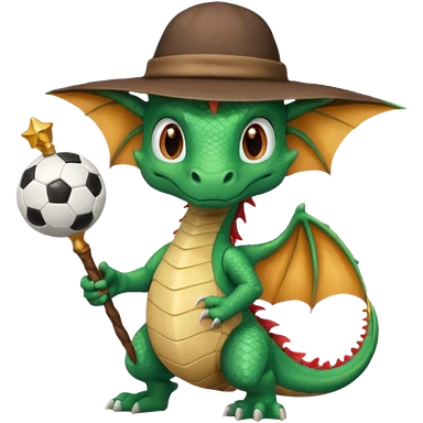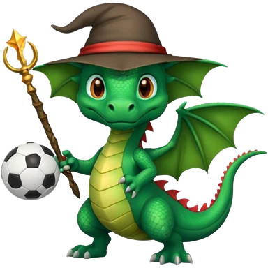 ein Drache mit einem Zauberstab in der Hand und einen Hud auf dem kopf,ein Fussball in der anderen hand emoji