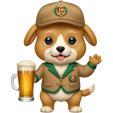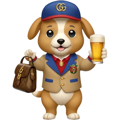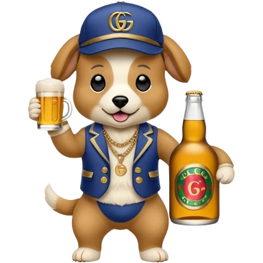 Ein Hund der talahon ist und Bier trinkt mit gucci cap und gucci Tasche emoji | AI Emoji Generator