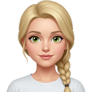 Ein Mädchen mit einem sleek aber in blond Zopf und grün braune Augen emoji