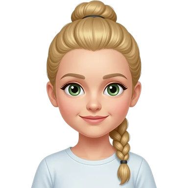 Ein Mädchen mit einem sleek Bun aber in blond Zopf und grün braune Augen emoji