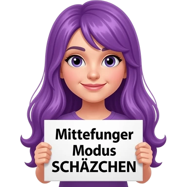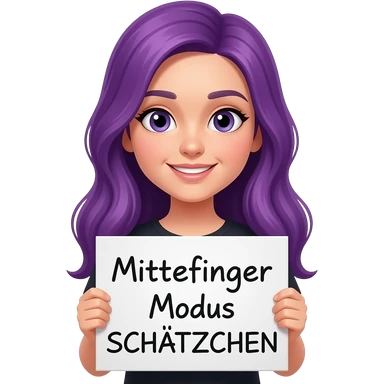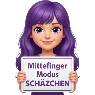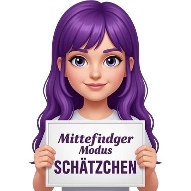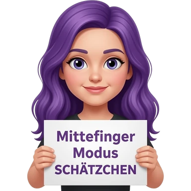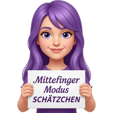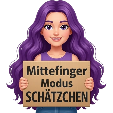 girl with long purple hair holding a MITTELFINGER MODUS SCHÄTZCHEN sign emoji