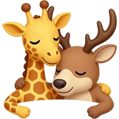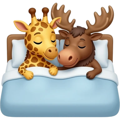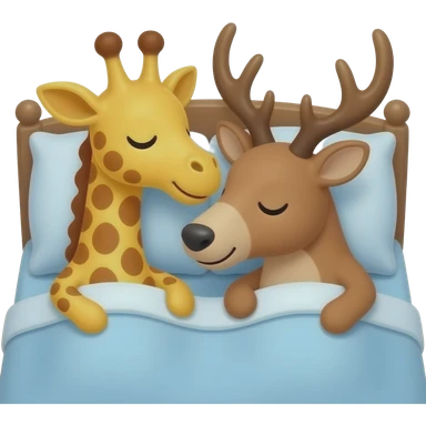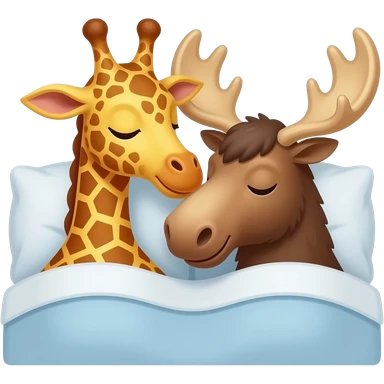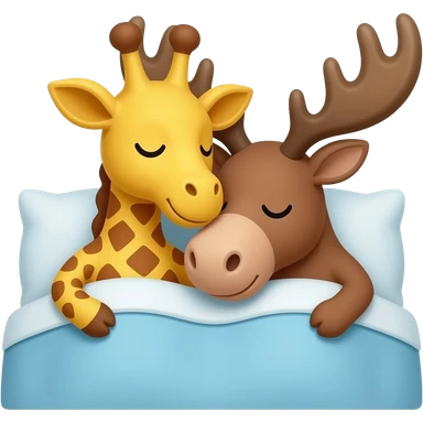 Einfacher Giraffenkopf und Elchkopf kuscheln in einem bett emoji