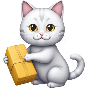 Kater in grau weiß, mit schwarzem Zylinder, der eine rote Banderole auf dem Kopf hat, der etwas schräg ist, so dass nur ein Ohr zu sehen ist. Der Kater schaut gerade nach vorne und am Hals hat er eine kleine, rote Schleife. Die Augen sind türkisfarben am funkeln mit kleinen, weißen Lichtreflexen. emoji