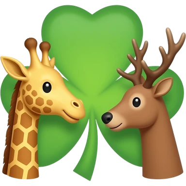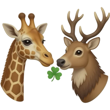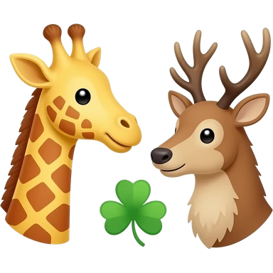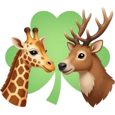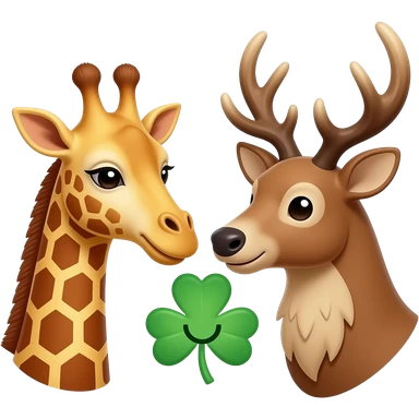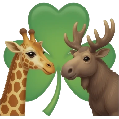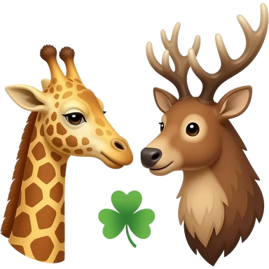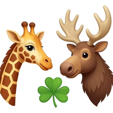 Einfacher Giraffenkopf und Elchkopf schauen sich an mit Kleeblatt emoji