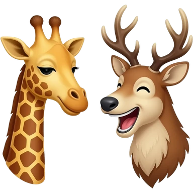 Einfacher Giraffenkopf lachen und Elchkopf lachen und schauen sich an emoji | AI Emoji Generator