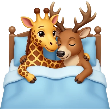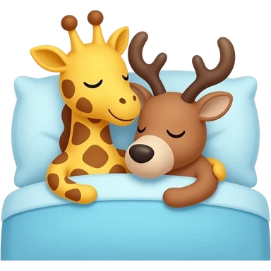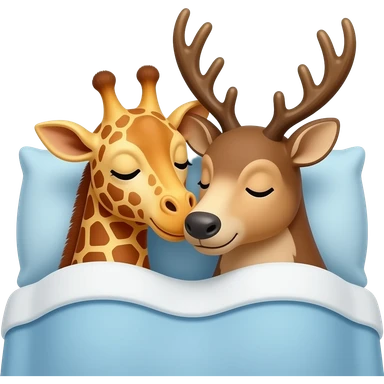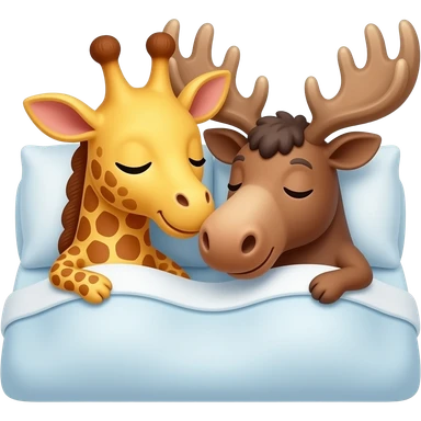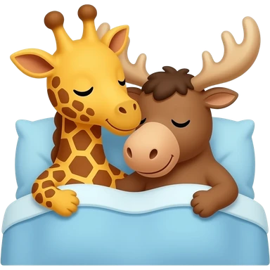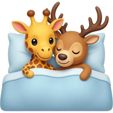 Einfacher Giraffenkopf und Elchkopf kuscheln in einem bett emoji | AI Emoji Generator