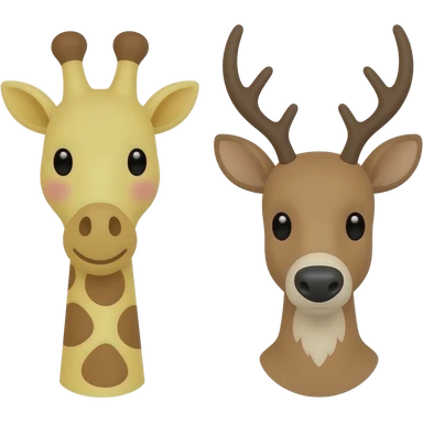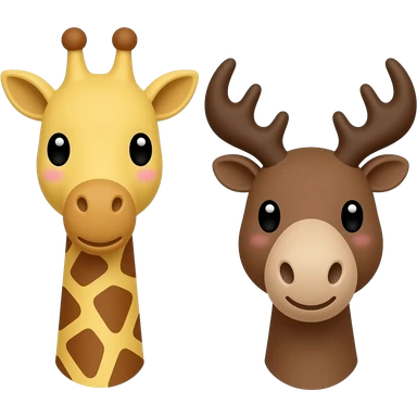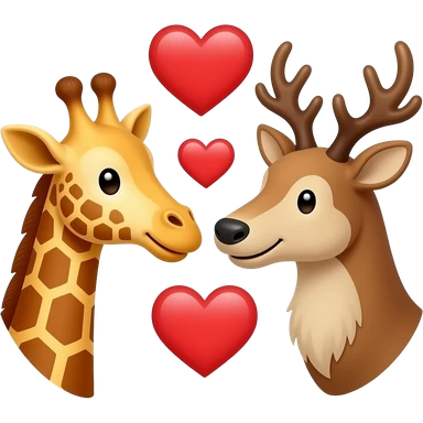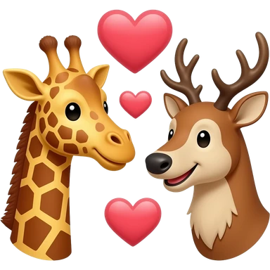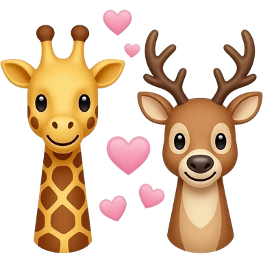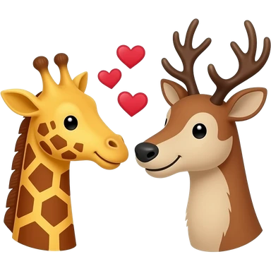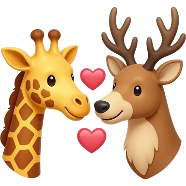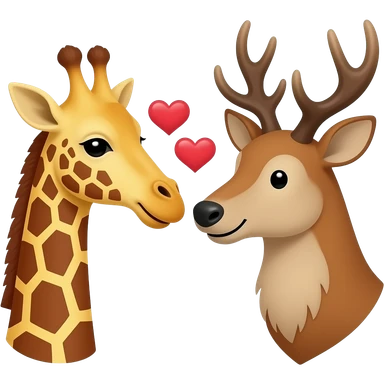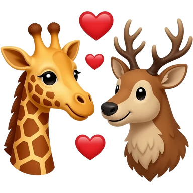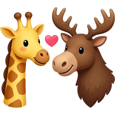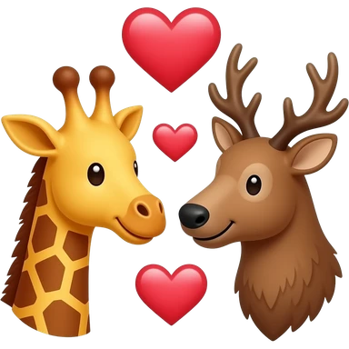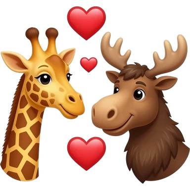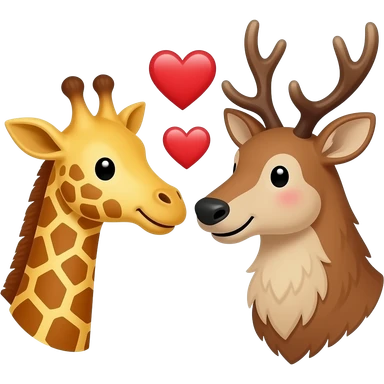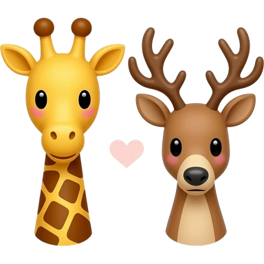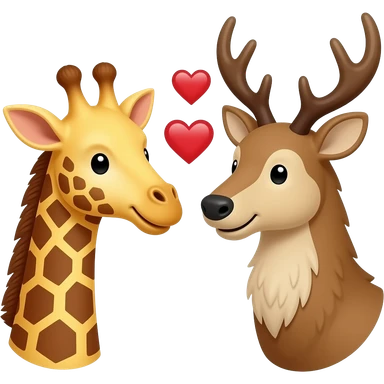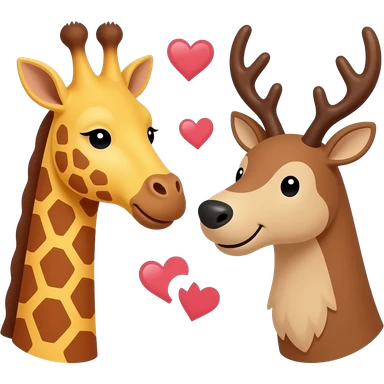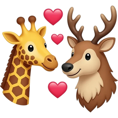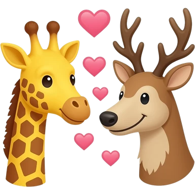 Einfacher Giraffenkopf und Elchkopf schauen sich an mit Herzchen emoji | AI Emoji Generator