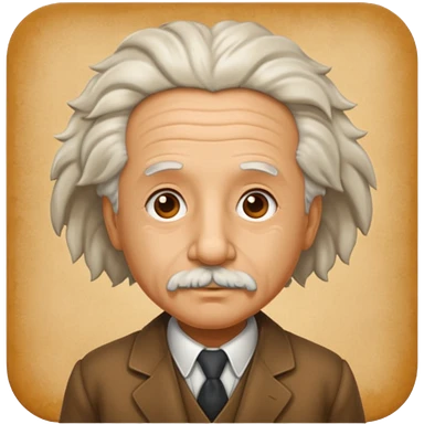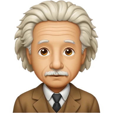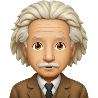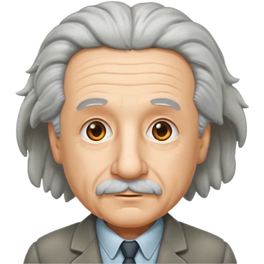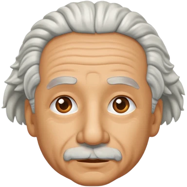 Einstein sticking his tongue out, simplified emoji style, white hair, mustache, suit emoji