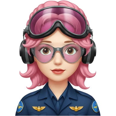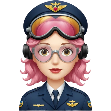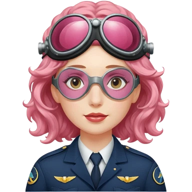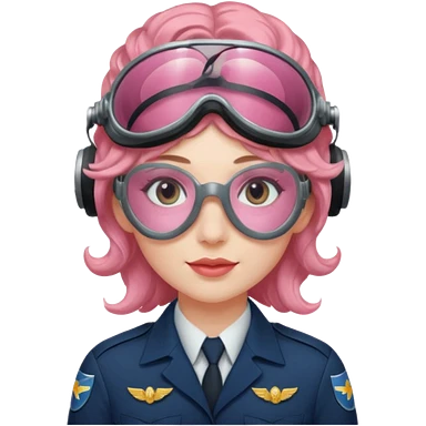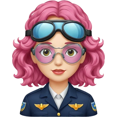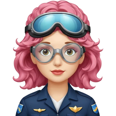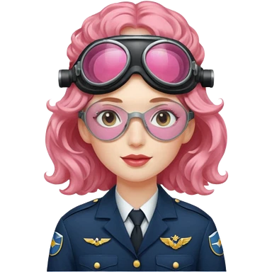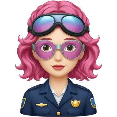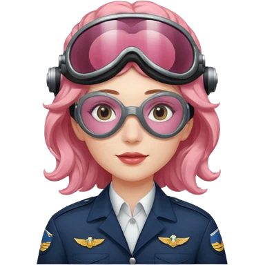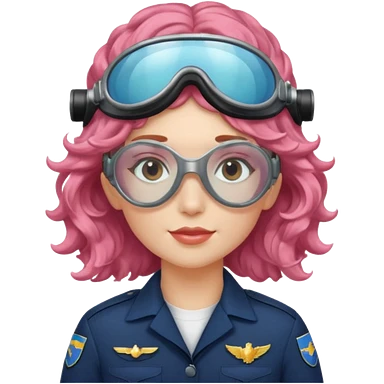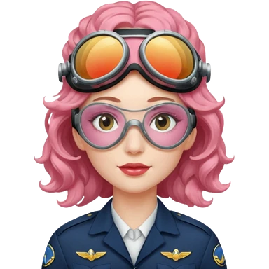 Flight Officer Lila – wavy rose-hair pilot with mirrored goggles emoji