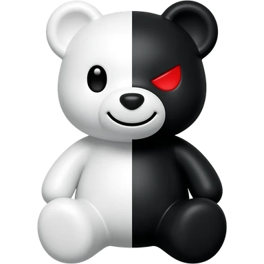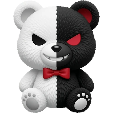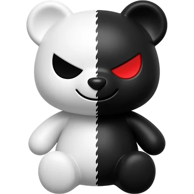 Um Ursinho de pelúcia que tem vida com metade branco é preto branco é normal mas o preto tem um sorriso maligno é olho do formato de / vermelho o nome dele é monokuma emoji