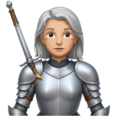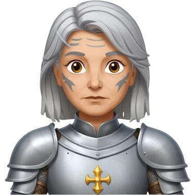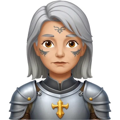 elderly tattooed knight, tattooed shoulder, long hair, female emoji | AI Emoji Generator