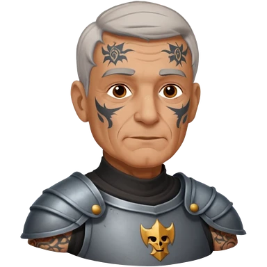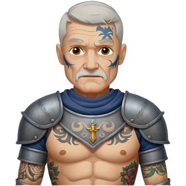 elderly tattooed knight, tattooed shoulder emoji | AI Emoji Generator