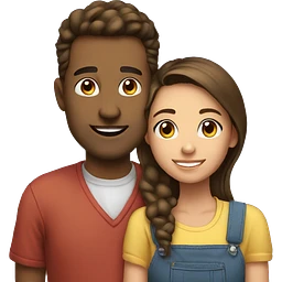 a family emoji consisting of 1 mom with medium length brown curly hair, 1 dad with one sided swept straight black hair. 1 eldest daughter with brown one sided straight hair, 1 middle child daughter with brown curly hair, youngest brother with taper fade haircut black hair. emoji