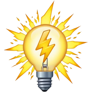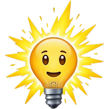 happy lightbulb emoji with spinning atom inside, chemical bubbles, electric lightning bolt coming out from top, colors yellow, neon blue, bright pink, energy and scientific creativity emoji