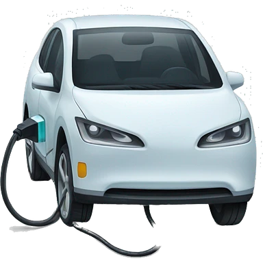 Cute electric vehicle with big circular eyes, EV charger to the right, emoji style emoji