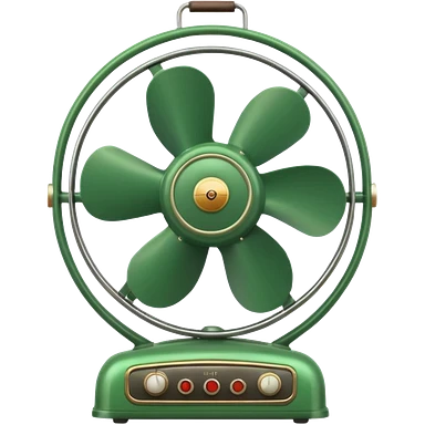 Vintage Electric Fan – retro green body, metal grill, humming softly. emoji