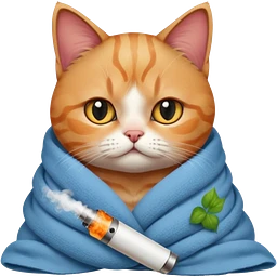 A cute sad British cat is wrapped in a blanket and will buy an electronic cigarette emoji
