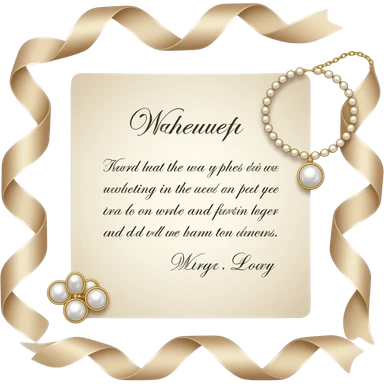 Elegant wedding flat lay with silk ribbons, pearl jewelry, handwritten vows, soft neutral palette, natural light, minimalistic luxury aesthetic emoji