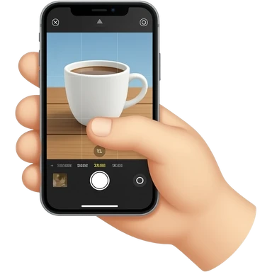 hand taking photo with iphone to a cup emoji
