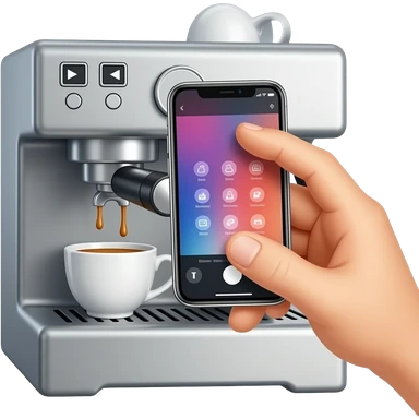 hand taking photo with iphone to a coffee machine emoji
