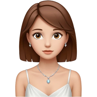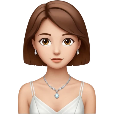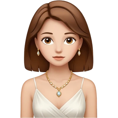 a middle brown hair girl with elegant white dress, wearing necklace, wearing makeup emoji