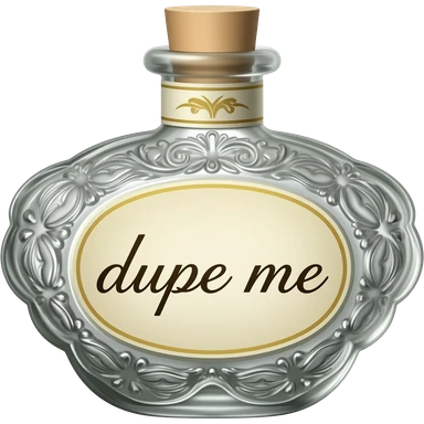 Elegant ornate bottle with dupe me in cursive emoji