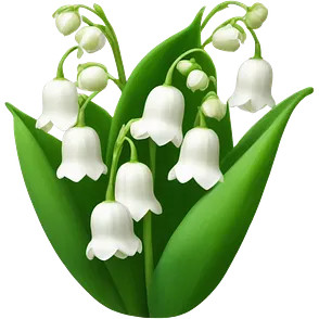 Elegant lily of the valley flower with delicate white bell-shaped blooms hanging from green stem and bright green leaves emoji | AI Emoji Generator