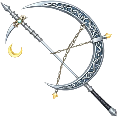 Elegant silver bow weapon with glowing string, crescent-moon motifs. emoji