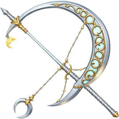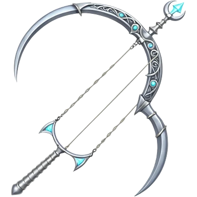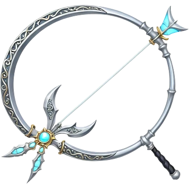 Elegant silver bow with glowing string, crescent-moon motifs. emoji | AI Emoji Generator