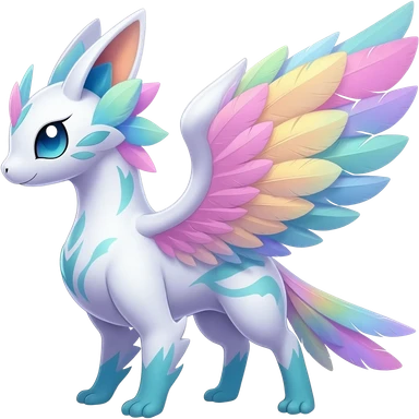 Shiny Exotic Tropical Colorful Neon-colored Glittery Ethereal Sparkly Espeon-Amaura-Aurorus-Fakémon-hybrid-creature (full body) emoji