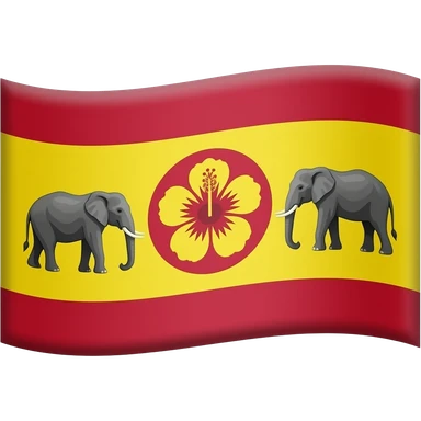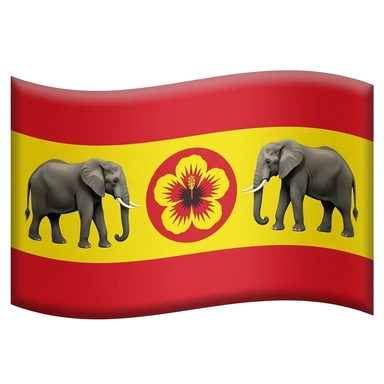 make an flage that up and down are red and the center wat yellow and make two elephant stand in the yellow part and make center an round that color is red and make an flower in that red circle the two elephants are standing and make the flower like hibiscus and shade it emoji