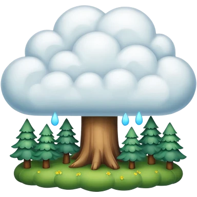 A stylized fantasy forest with glowing mushrooms and colorful tree emoji