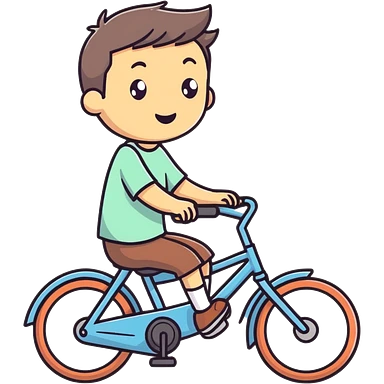 children's bicycle with training wheels, colorful, cartoon style emoji