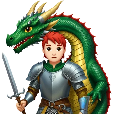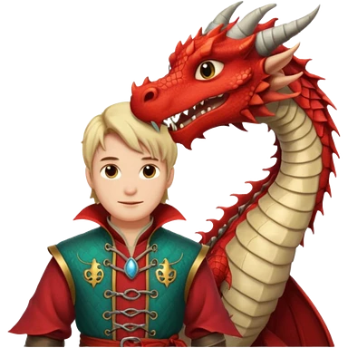 a dragon tamer in medieval time with a dragon next to him emoji