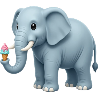 Pink elephant with blue polkadots, eating an ice cream cone with chocolate, vanilla, and strawberry emoji