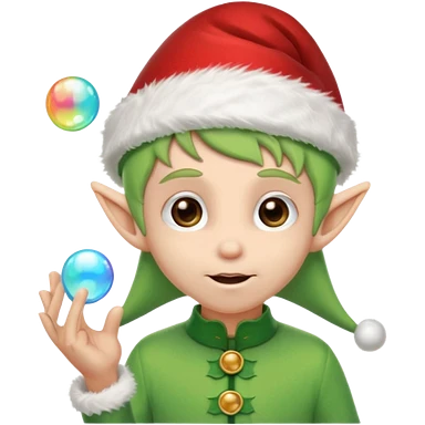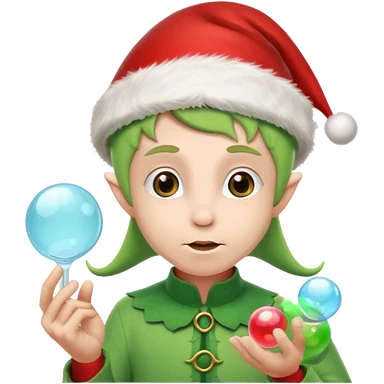 elf wearing a santa hat holidng a bubble emoji | AI Emoji Generator