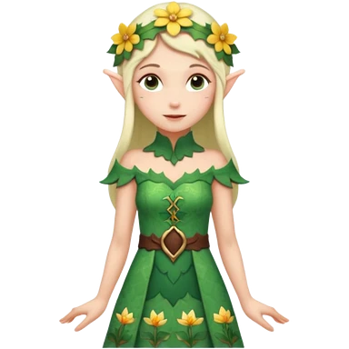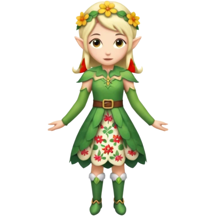elf wearing flower pattern dress,full body. emoji | AI Emoji Generator