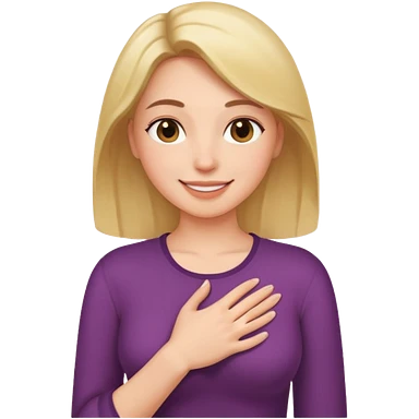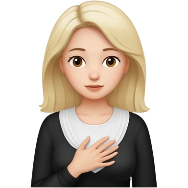 Elini göğsüne koyup rahatlayan,huzurlu kadın emoji