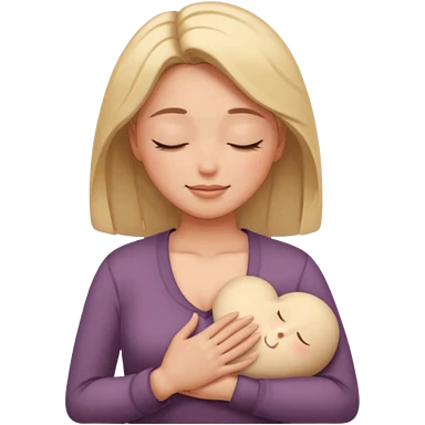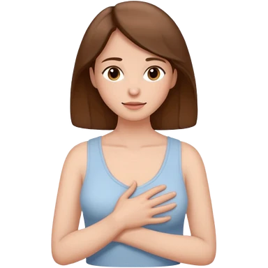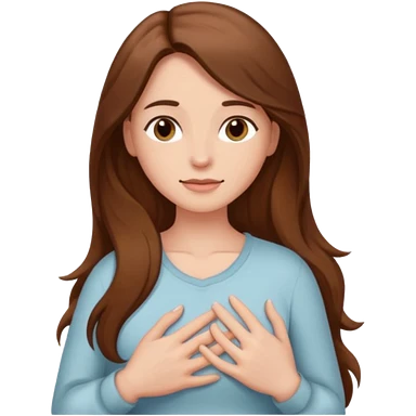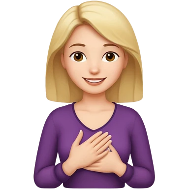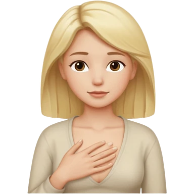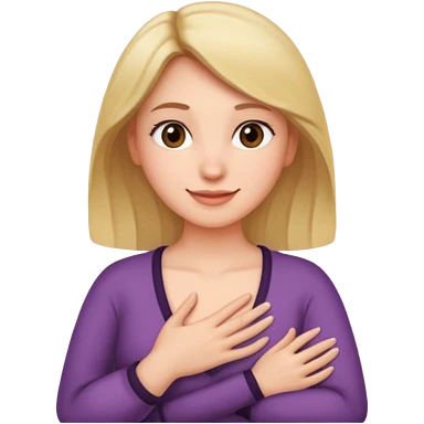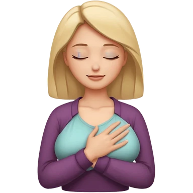 Elini göğsine koyup rahatlayan huzurlu kadın emoji