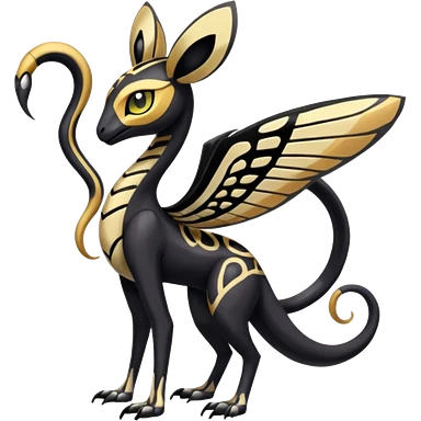 Egyptian Smooth Soft Glossy Tribal Exotic Colorful Tropical Meloetta-Venom-Heliolisk-Helioptile-Monster-Animal-Pokémon-Fakémon-fusion, full body, tribal markings emoji