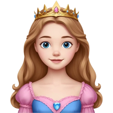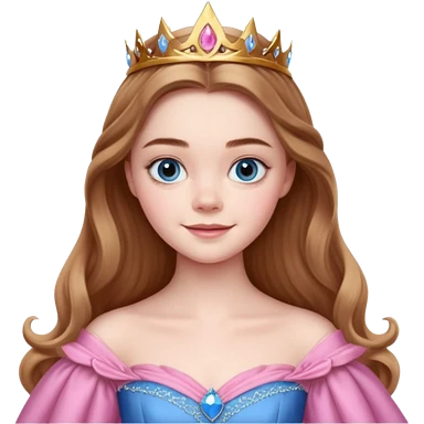 Elle fanning as princess Aurora in Maleficent but with brown hair and blue eyes emoji | AI Emoji Generator