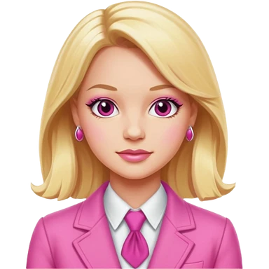 Elle woods with wavy blonde hair , a baby pink blazer with a white undershirt emoji