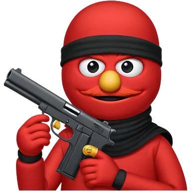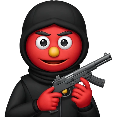 elmo with an AK47 and an black balaclava emoji | AI Emoji Generator