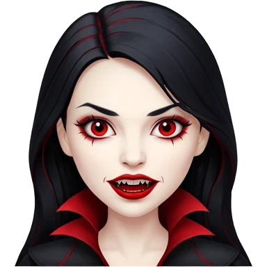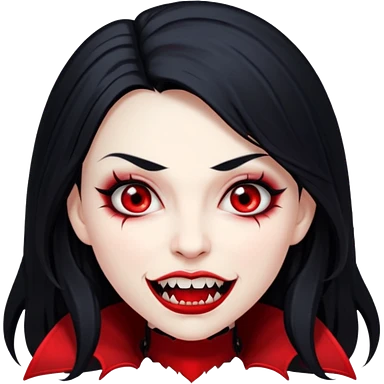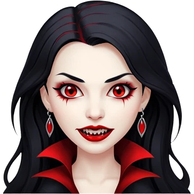 Beautiful vampire woman with back hair and red highlights showing fangs emoji